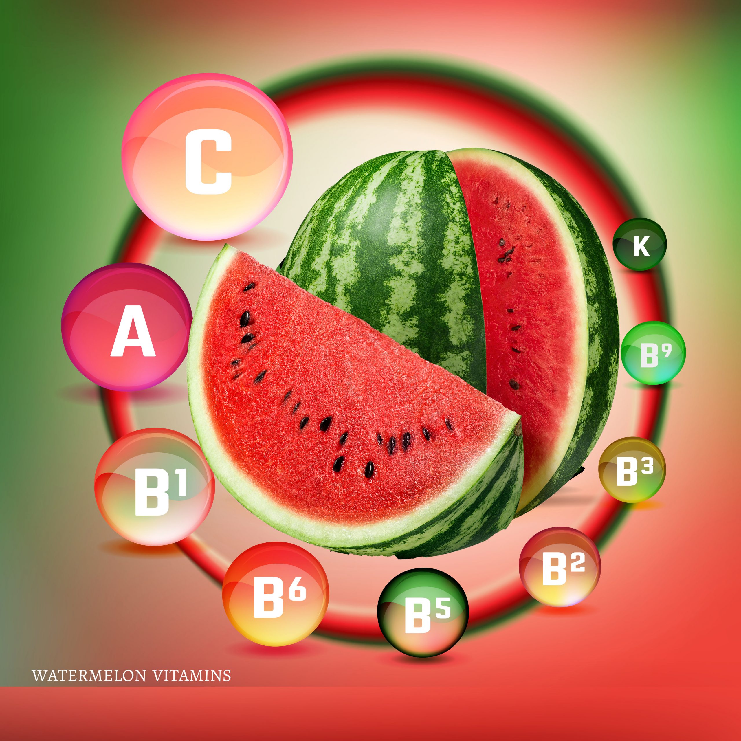 La vitamina B é necessaria per la produzione di energia. L´anguria é ricca di vitamina B1, B2, B3, B5 e B6, oltre al magnesio e potassio. Il consumo regolare di anguria contrasta la stanchezza e la debolezza grazie al buon quantitativo di sali minerali, protegge il cuore migliorando la circolazione del sangue attraverso la vasodilatazione e aiuta ad abbassare la pressione.