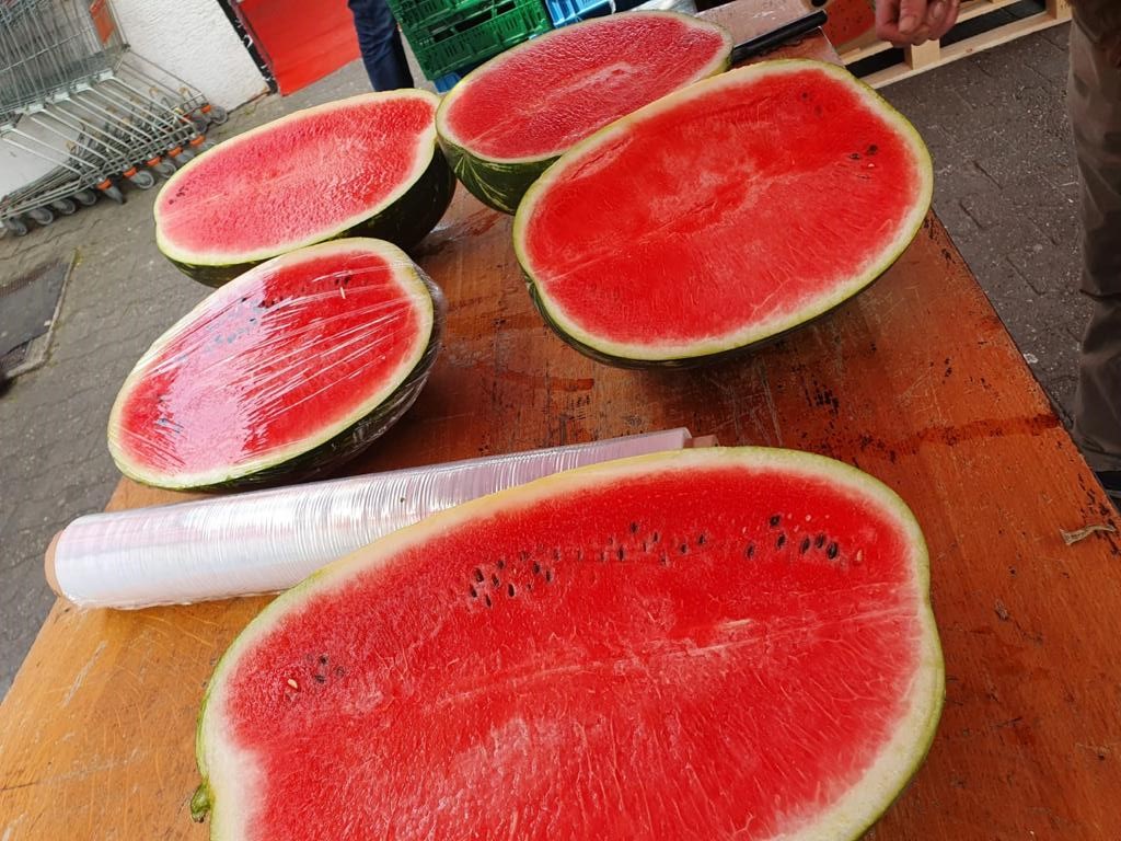 All´arrivo nei punti di vendita , l´anguria viene controllata nella qualitá e nella temperature e cosí viene esposta con successo dai clienti. L´anguria si presenta con un colore rosso e un sapore squisito e dolcissima.